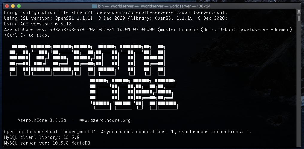 • The “dashboard setup”: this is an EXTREMELY EASY way of installing AzerothCore in your machine, based on a collection of bash scripts created by Yehonal. However, you can only use this setup in Ubuntu or similar platforms. Windows is not supported, and probably we are not there yet with macOS as well.